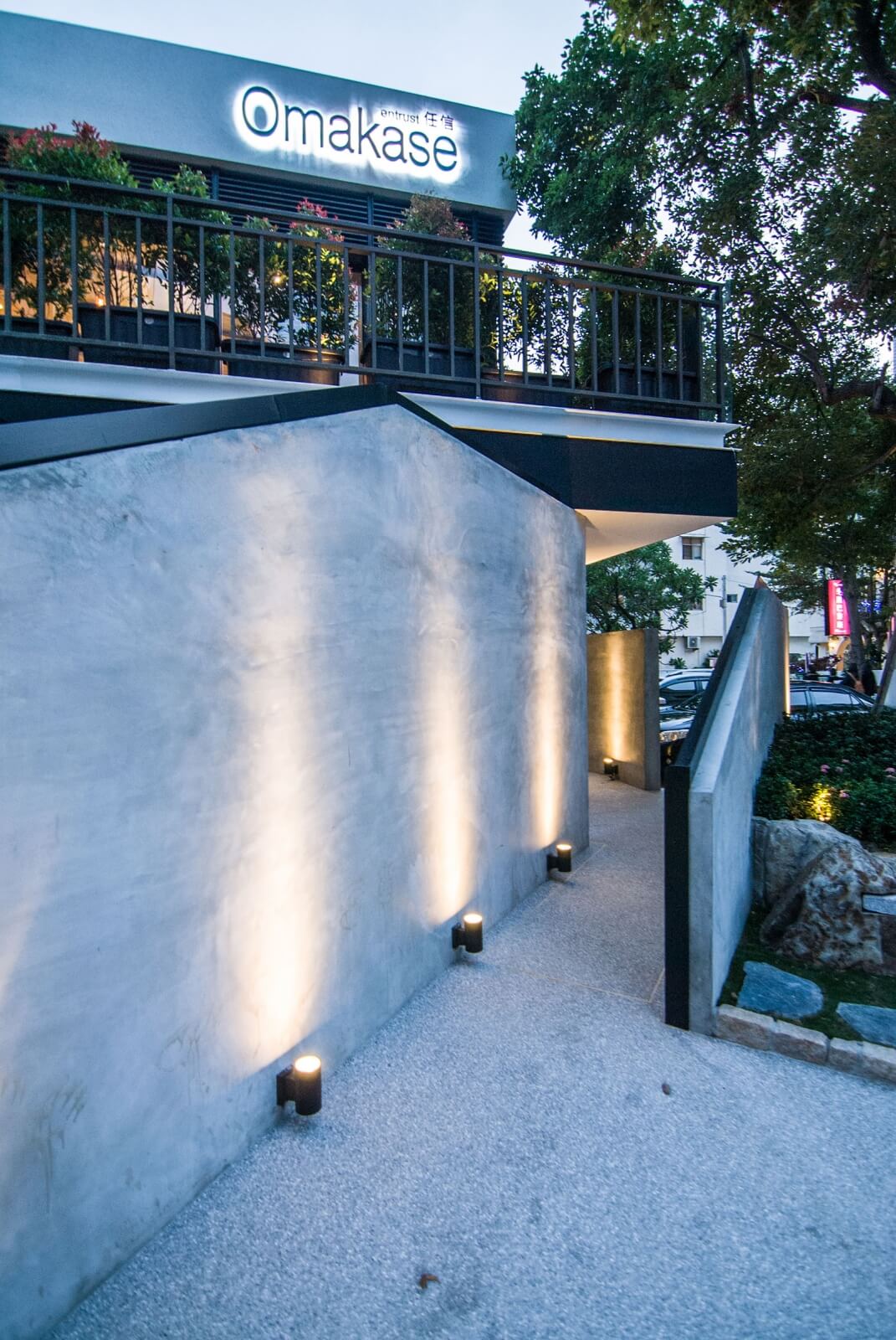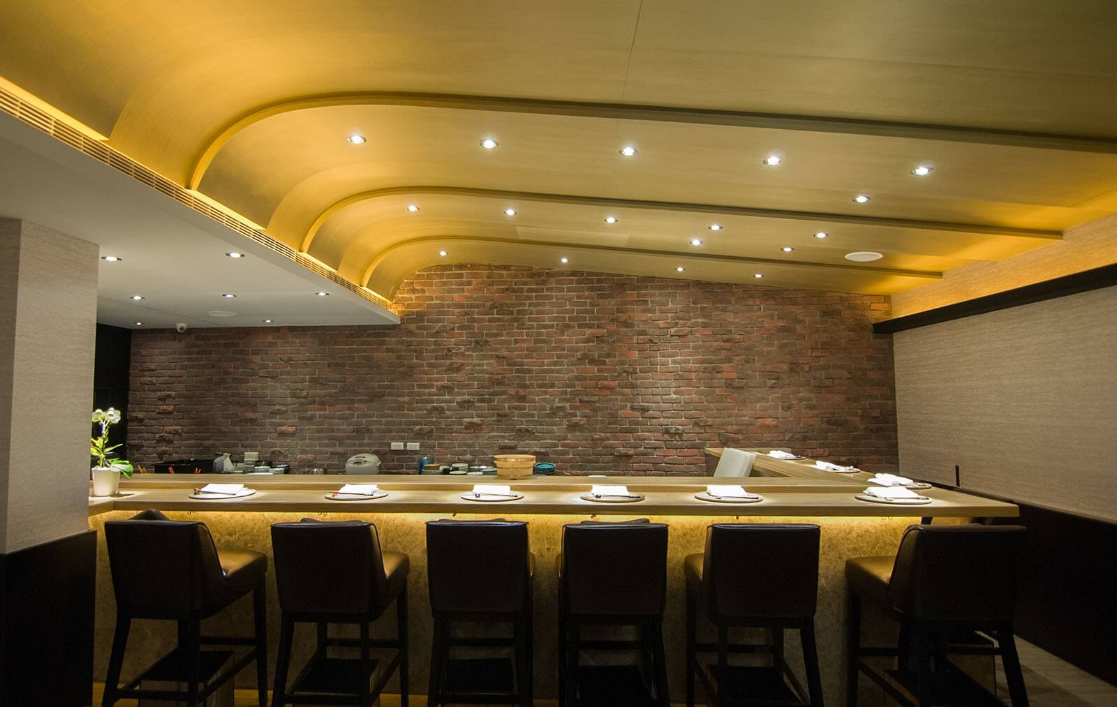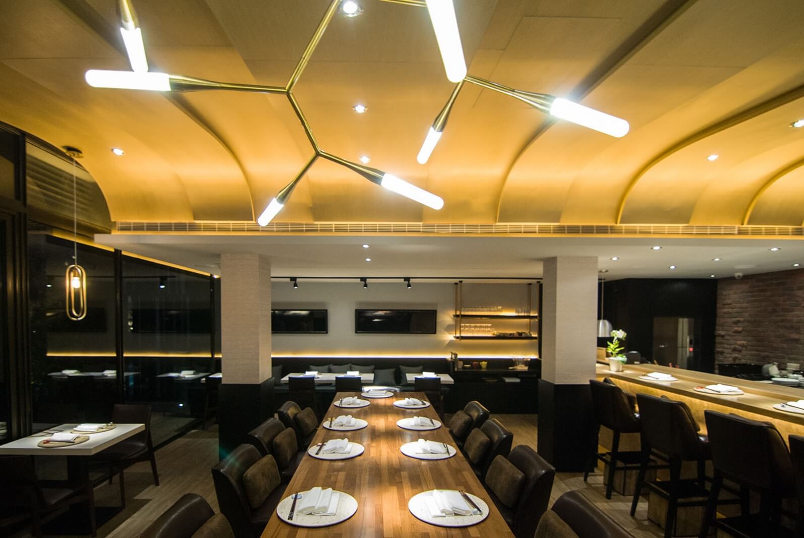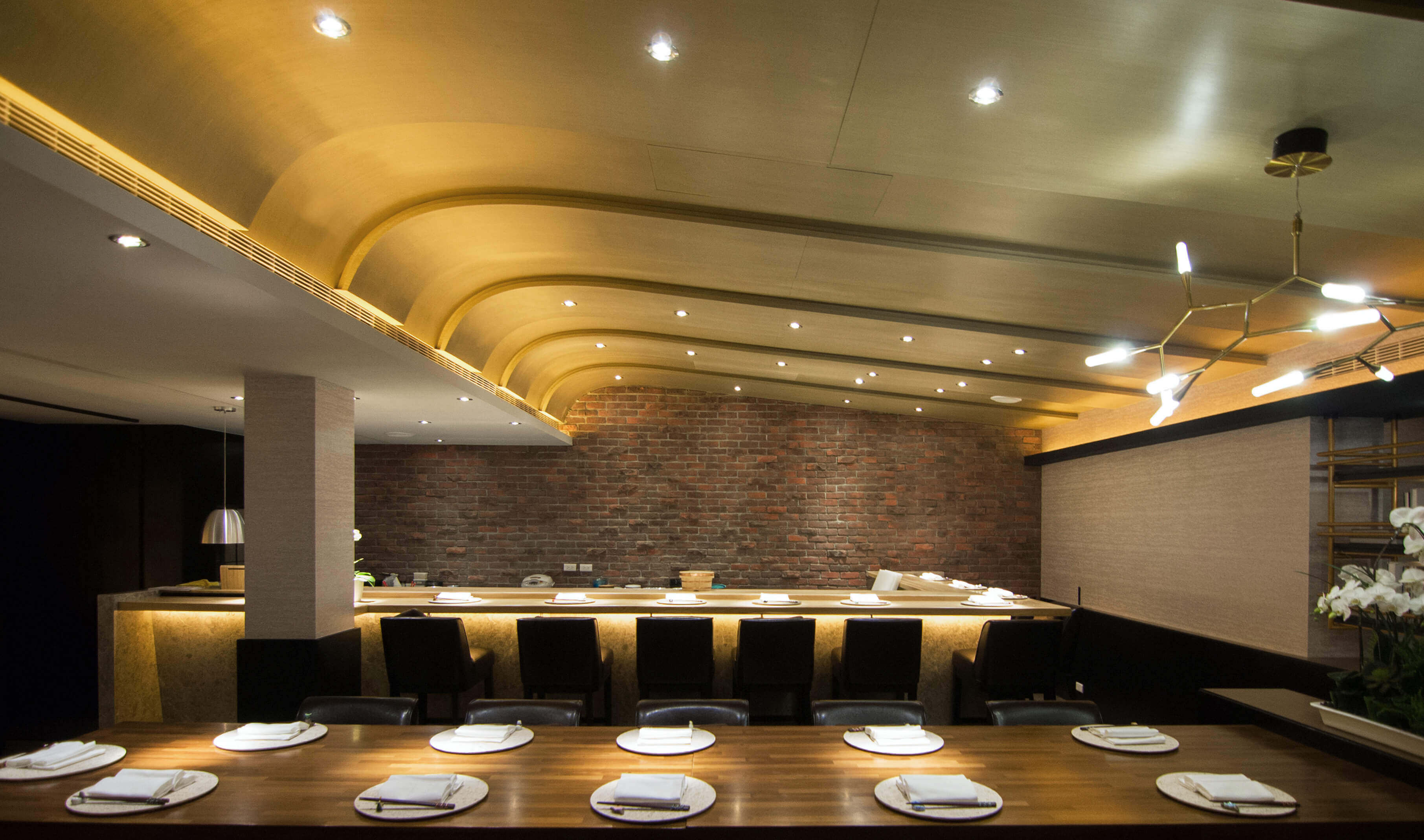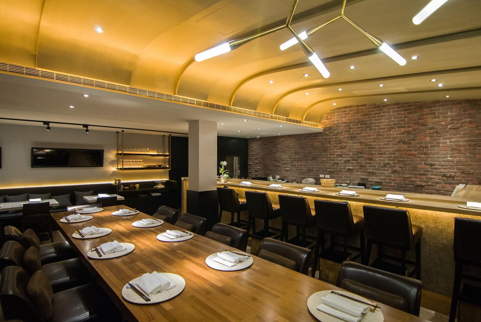 綜合兩層的內部空間,完整體現了日式侘寂與法式優雅的美學結合,Omakase的設計,除了希望給消費者有趣、深刻的空間感受之外,也希望透過視覺喚起潛藏於底的味覺感受,不僅放心地把自己的味蕾交給廚師,也能卸下心房,好好在這個包覆自己的空間裡細嚼品嚐。