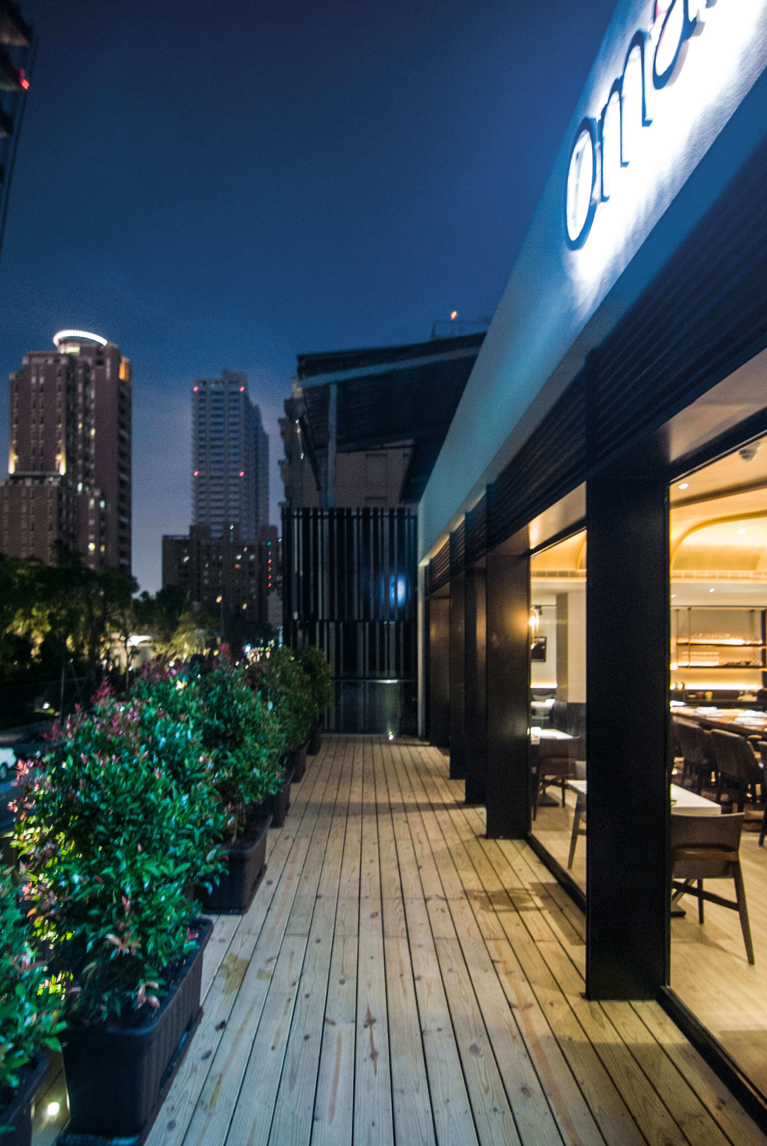 二樓的另一個空間,則是保留先前屋宅的完整陽台,此陽台是一個能夠在用餐之中轉換心情的場域,提供客人抽菸、聊天等等的功能。