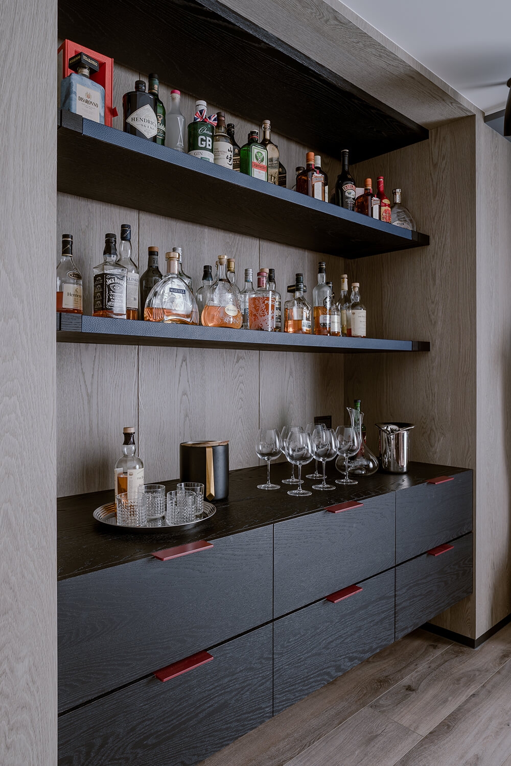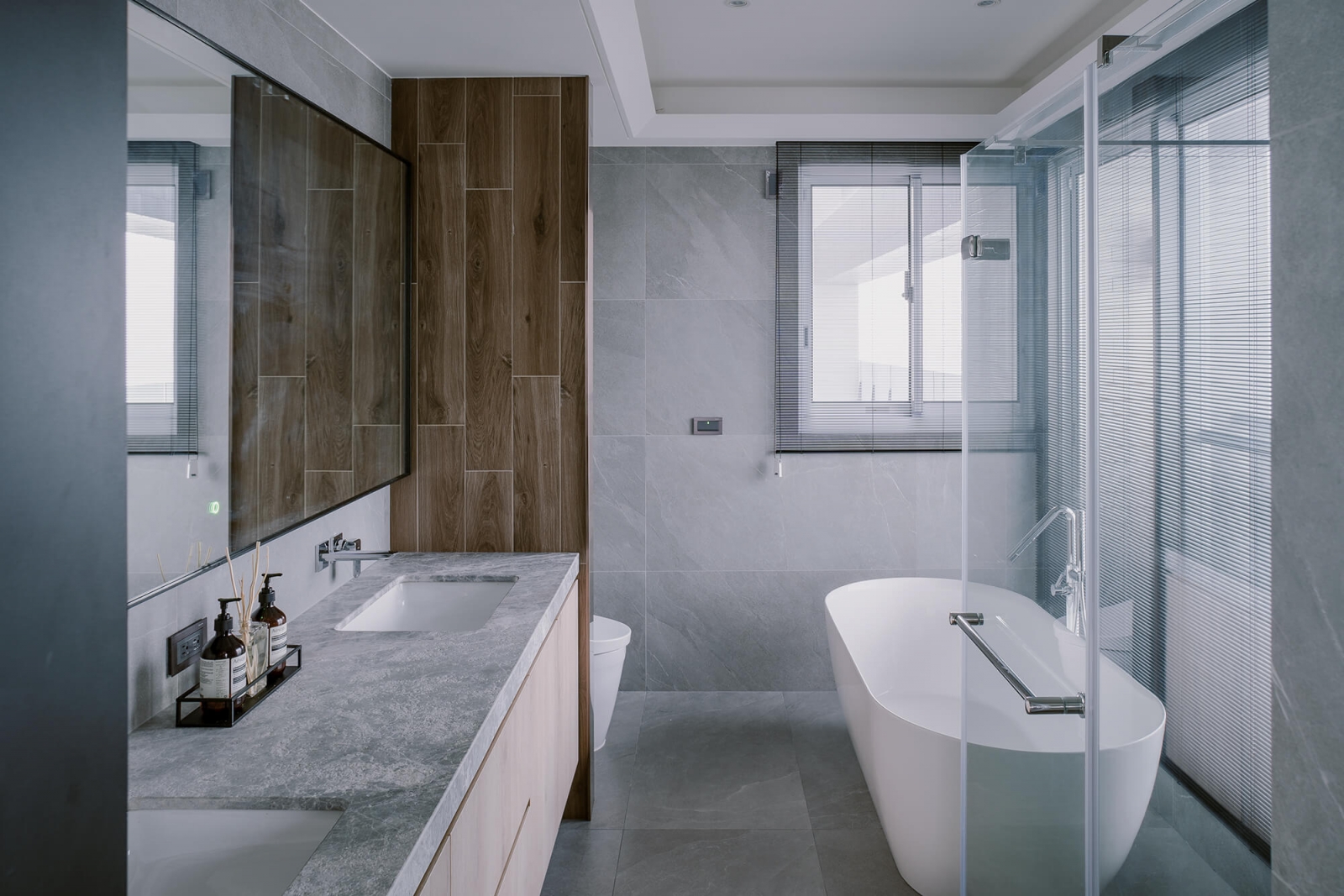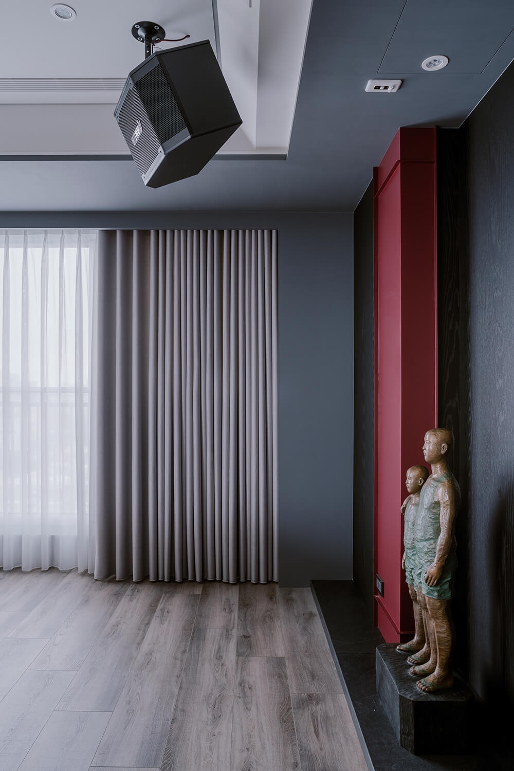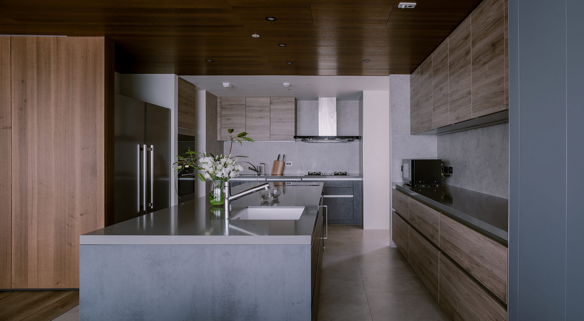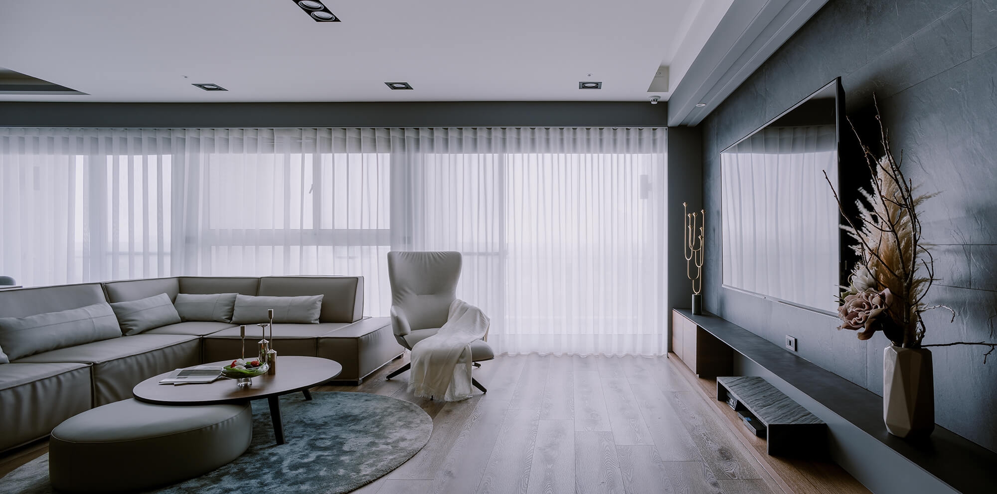 整體空間走低調、現代的設計風格,涵蓋著不同種類的材質,卻不偏離四種空間色彩。結合著不同材質與色彩的組合,不僅呈現出立體、俐落度,更著實增添了典雅寫意的氛圍。是個適合招待朋友聚會,也可以是溫暖的住宅空間。