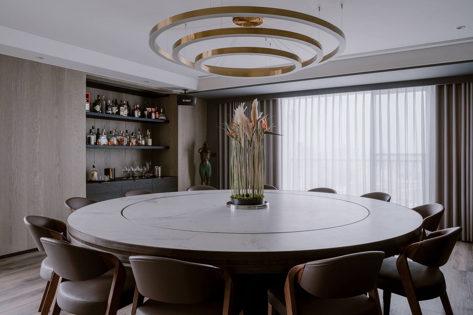 原本主臥的空間則改為宴會包廂,置入圓桌,提供人們在此聚會、娛樂的地方。