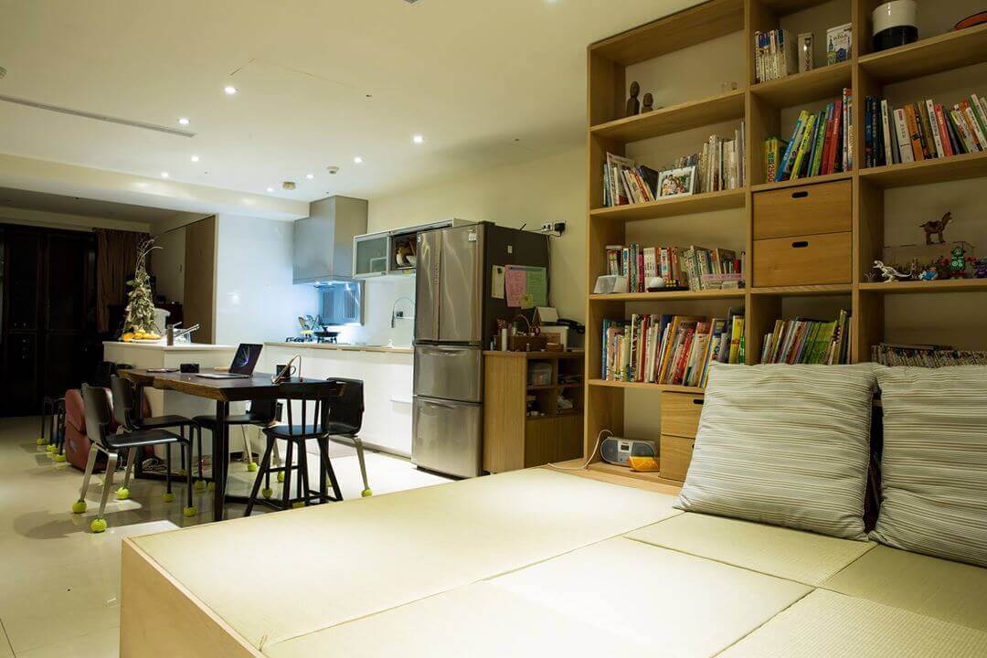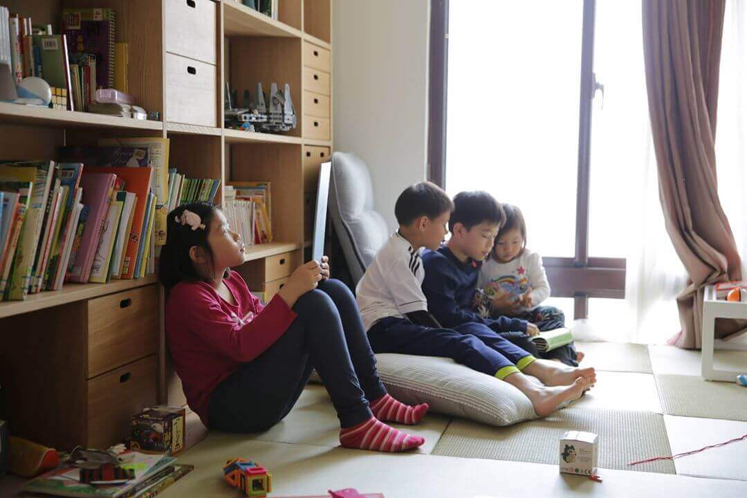 在和室裡擺入幾個抱枕或是和室椅,小朋友及大人可以或坐或臥的盡情在上面看書、打鬧,甚至在可以休息小憩。