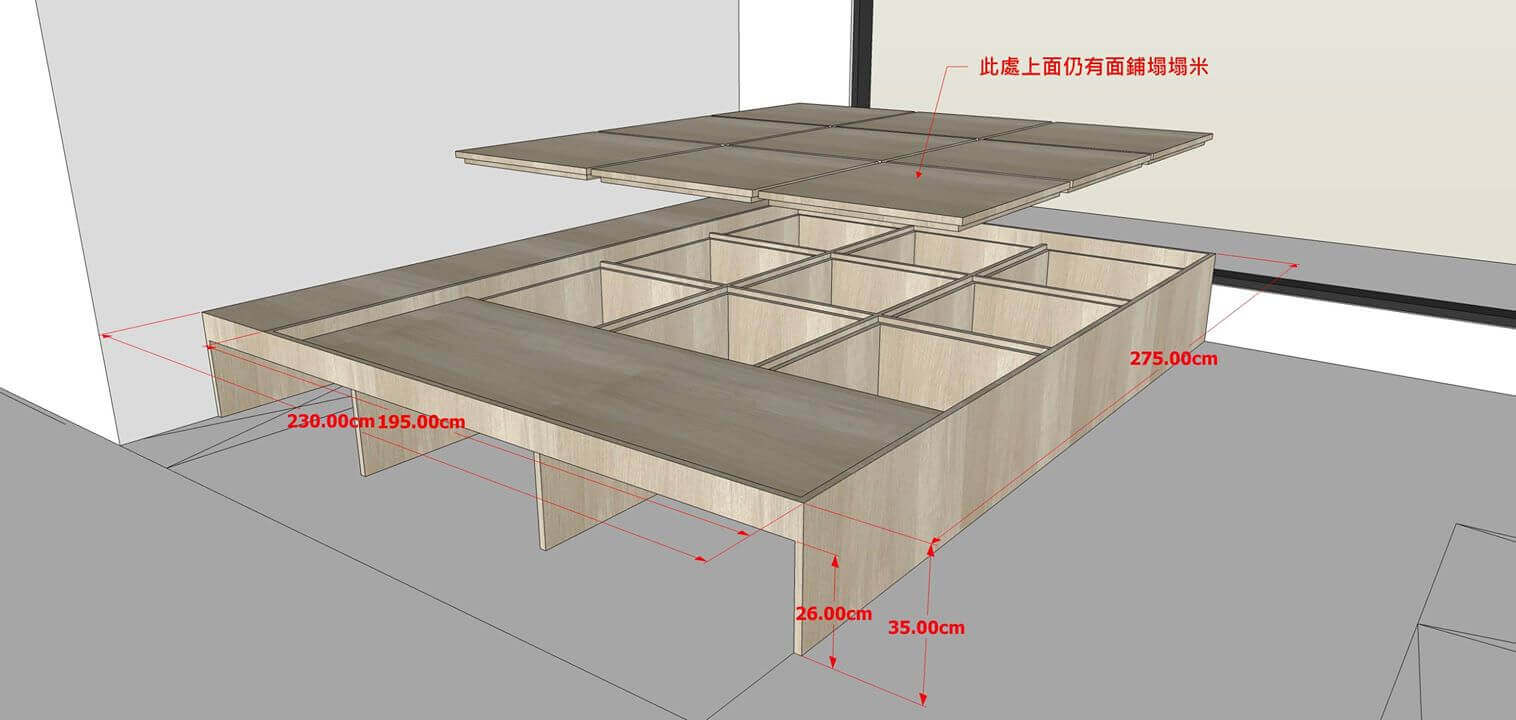 將客廳變成和室的空間,當地板架高時,下面也能夠做出收納空間。