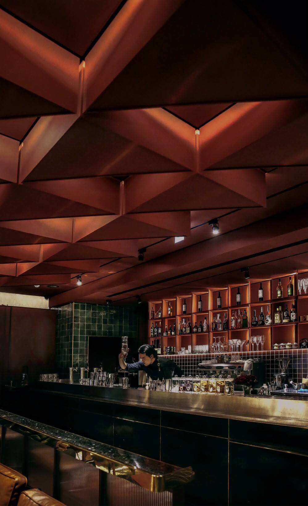 因為青年旅館面對的是來自世界各地不同的年輕人,有著不同文化的背景,作為客人的他們,希望能從住宿體驗中感受一些台灣傳統的空間氛圍,但這樣的氛圍會是輕悄悄地出現在細節裡或是轉化過的方式,不會是很直覺性的。因此設計師蒐集許多台灣本土的元素,主要利用磨石子的工法呈現出來,另外在造型上較偏向以鐵件表示,透過互動裝置中留下了一些功夫與伏筆,像是可以摺疊打開的落地窗,當它完整對外敞開時,視線能夠延伸到室外,而光線也容易進到空間裡,這樣內外交界曖昧模糊的樣子,也讓人會想一探究竟,開門進去的同時,牽動了設計的小人物與銅製品,隨著門的開啟銅製品們排排站地往外滑出來、吧檯前的高窗則藉由機械裝置與齒輪運變成垂直的九十度的樣子,往外開啟到變成水平時會類似屋簷的形狀,吸引路人的視覺目光。