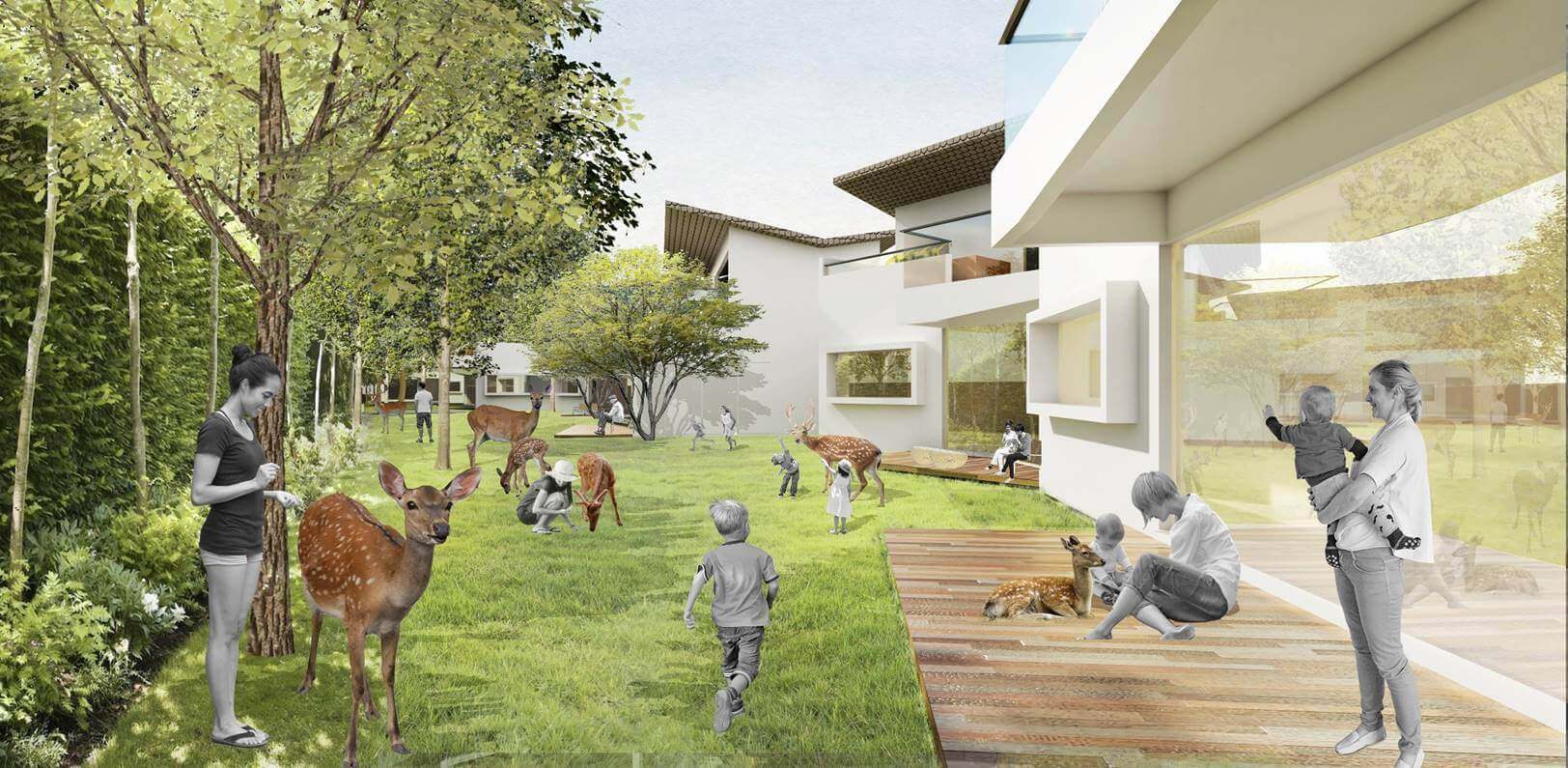 動物園區的設計,有別於以往獅子被關在籠子裡的視角,這次我們將抬頭仰望,藉由透明的空橋觀賞獅子。而天空步道的串連,也將使用空間立體化。