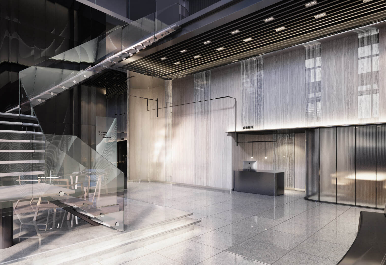這正是處理台中城宏玻璃廠商一案時,最大的主軸問題。為了展現自家的商品以及技術,業主選擇將玻璃變成空間最主要的材料。從櫃檯、會議室、等待區以及洗手間,38坪的空間裡,百分之五十以上皆是使用玻璃而成。大量採用玻璃,不僅難清潔,更可能有過於冷冽的反效果,因此如何巧妙地運用玻璃,使其與空間產生不同的連結與作用?快看晴天見的最新設計。