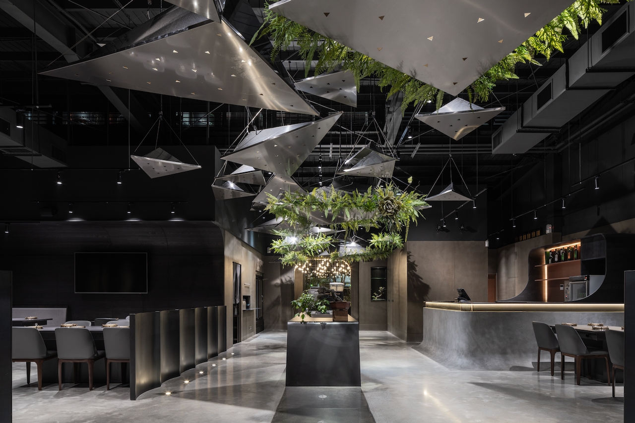 位於會議室左方的櫃檯,使用黑鐵版包覆,使黑色的低調凸顯出櫃檯背牆及右側會議室的設計亮點。