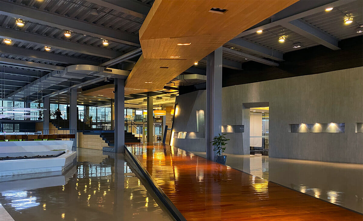 像是休閒國聯總部的辦公室,我們採用的就是斜的動線,來混淆空間中的尺寸感。