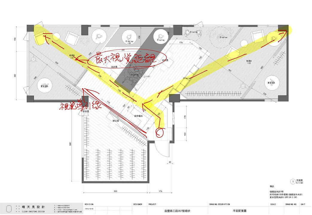 運用斜邊的動線模式,可以將整個空間的觀感變得不同,並且讓空間產生很多零碎空間。
