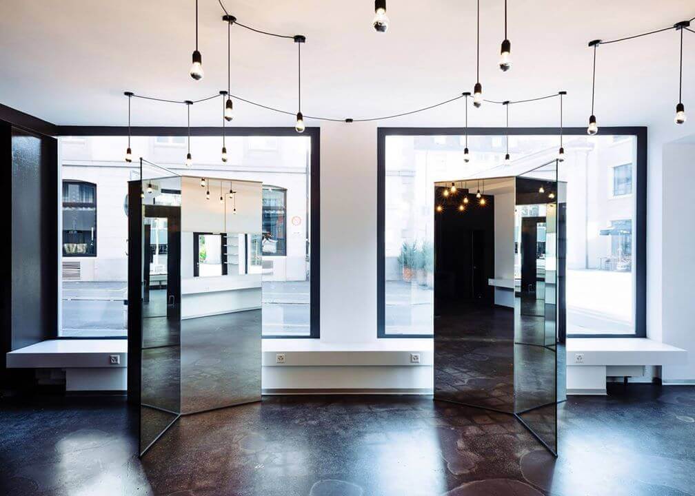 使用鏡子的另外一個重點是:反射面不要直接面對觀看者,讓消費者看見自己。讓鏡子的反射影像看不到觀看者本人,這樣會產生“這是另一個場所”的錯覺,效果便會更佳強烈。