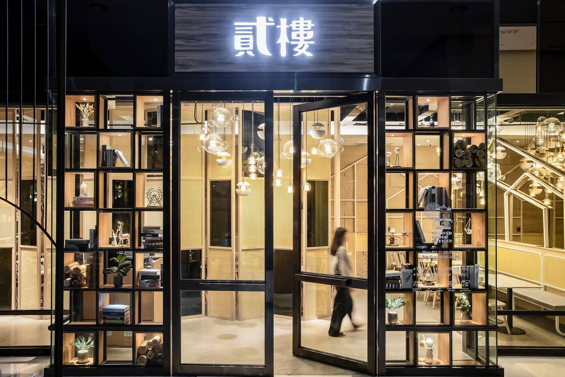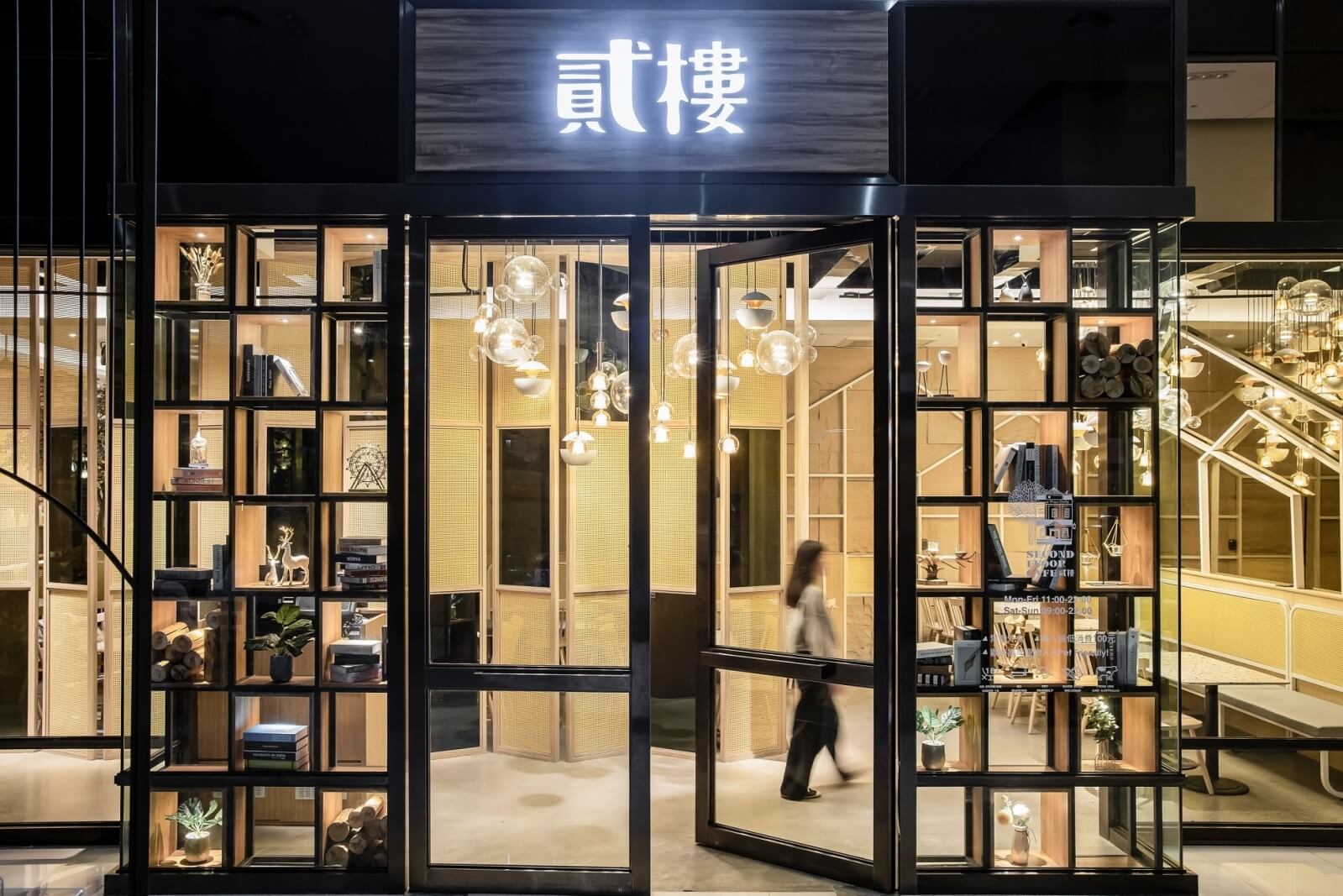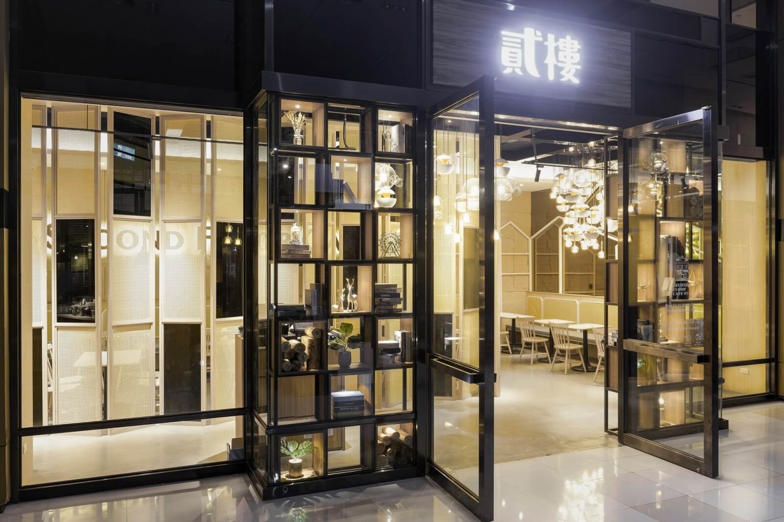 與商場 1 樓的精品區一同映入眾人眼簾,貳樓擷取百貨展示櫥窗的概念,運用大面的玻璃落地窗打破了餐廳內外的隔閡,也讓內部精彩的美式空間元素,如壁爐、樹和小屋,呈現在外頭人流的環狀帶上,吸引顧客逗留的同時也期待著能讓民眾放慢腳步,多多感受餐廳帶來的溫暖氛圍。