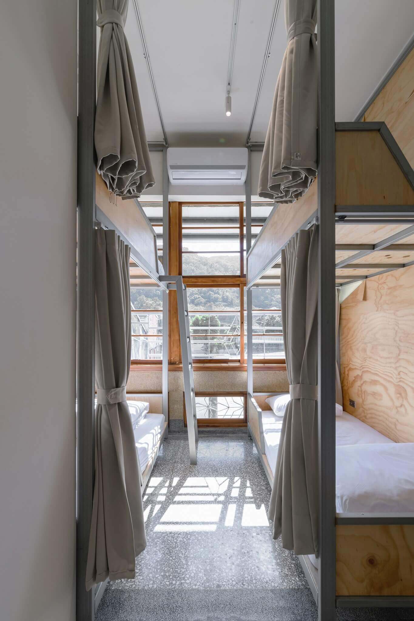 -房間數分配與床位:1 房/4組床架上下舖/8人為一房單位