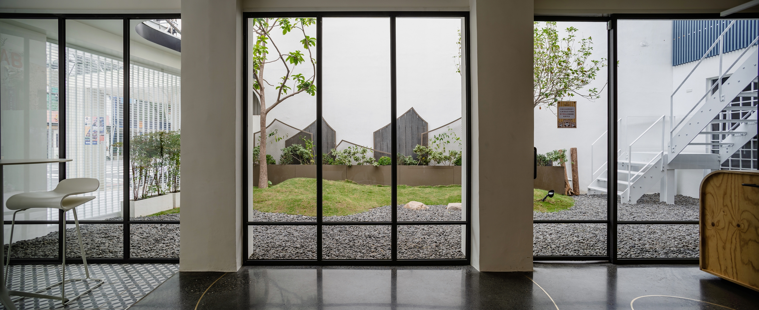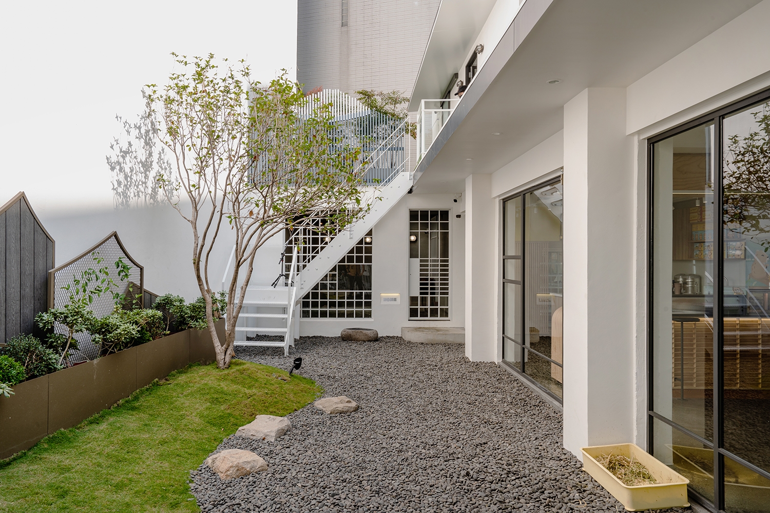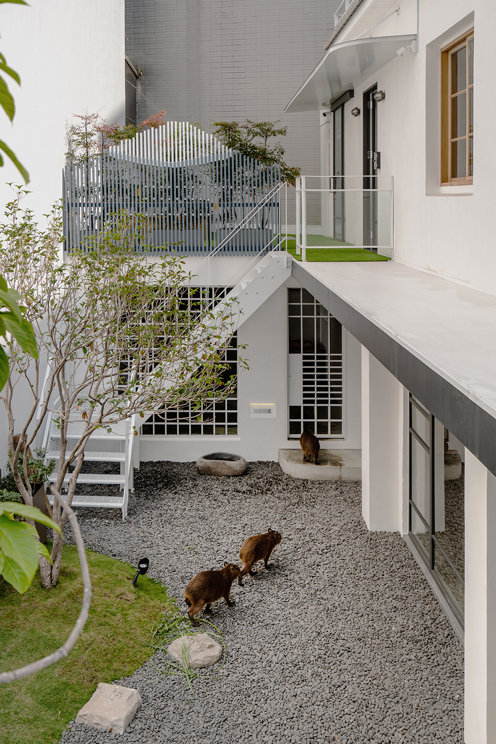 另外我們也將老屋重新整理,拆掉違建的部分,規劃上分為1樓內用區、工作區、冷藏庫存區、庭園造景、水豚區,2樓則是大露臺、洗手間及辦公區。