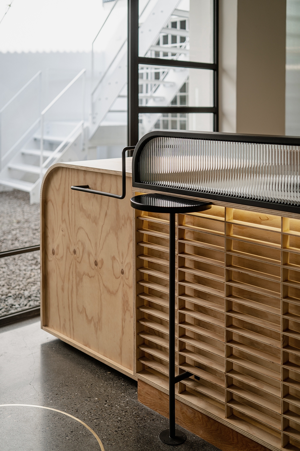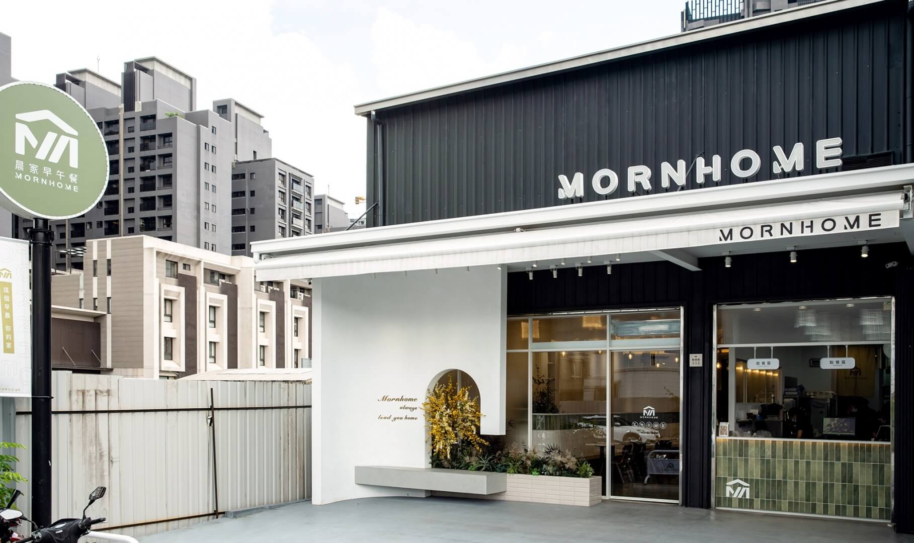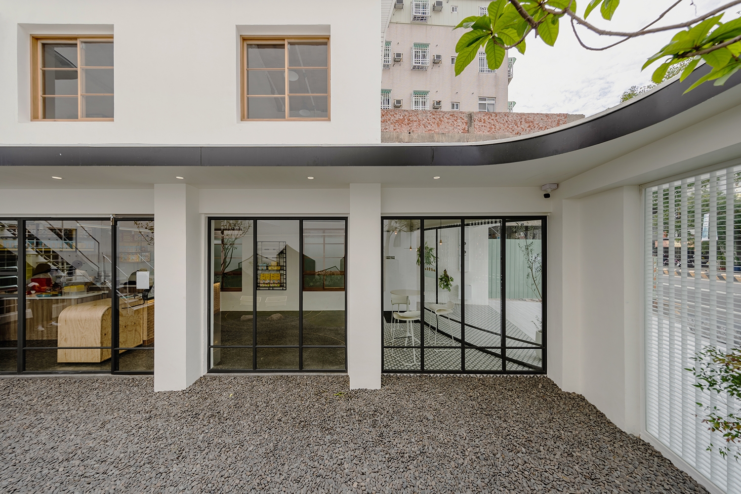 此外,由於本案空間位於熱鬧的長榮路上,周遭停車非常困難。為吸引客群停留到店內消費,我們將建築退縮,並釋出騎樓空間,使建築物內退與周遭建築形成強烈對比,讓人更想一探究竟。