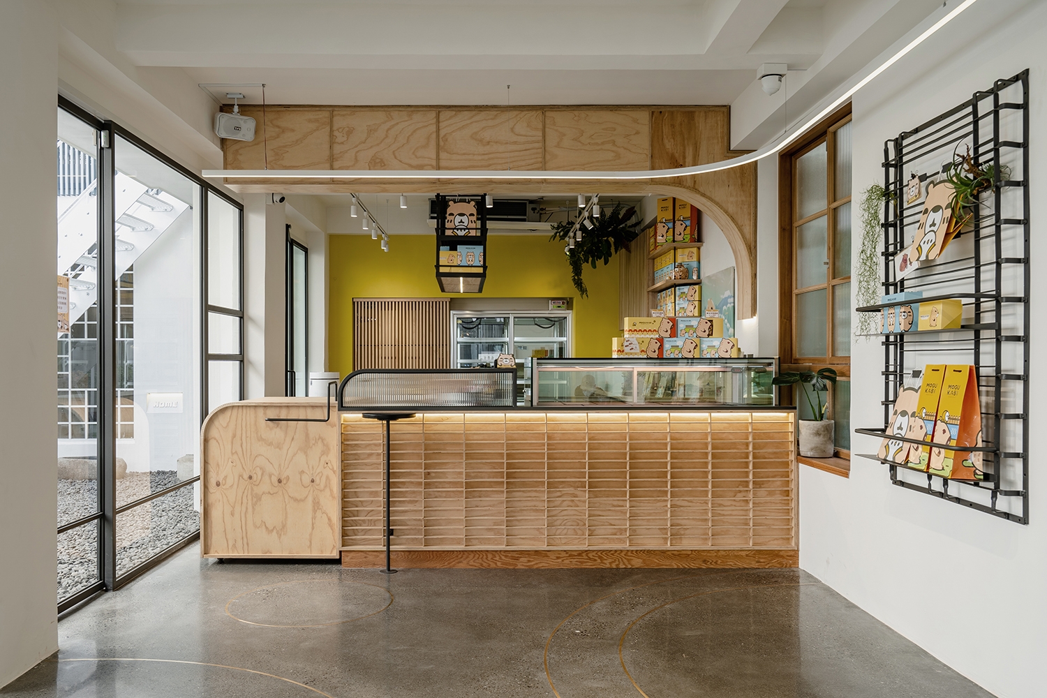 本次晴天見執行的品牌空間為台南甜點店 MOGU KABI 。 MOGU KABI 以3隻呆萌的水豚君為發想核心,期許像水豚一樣呆萌、療癒的個性,能透過甜點和空間帶給消費者截然不同的消費體驗。