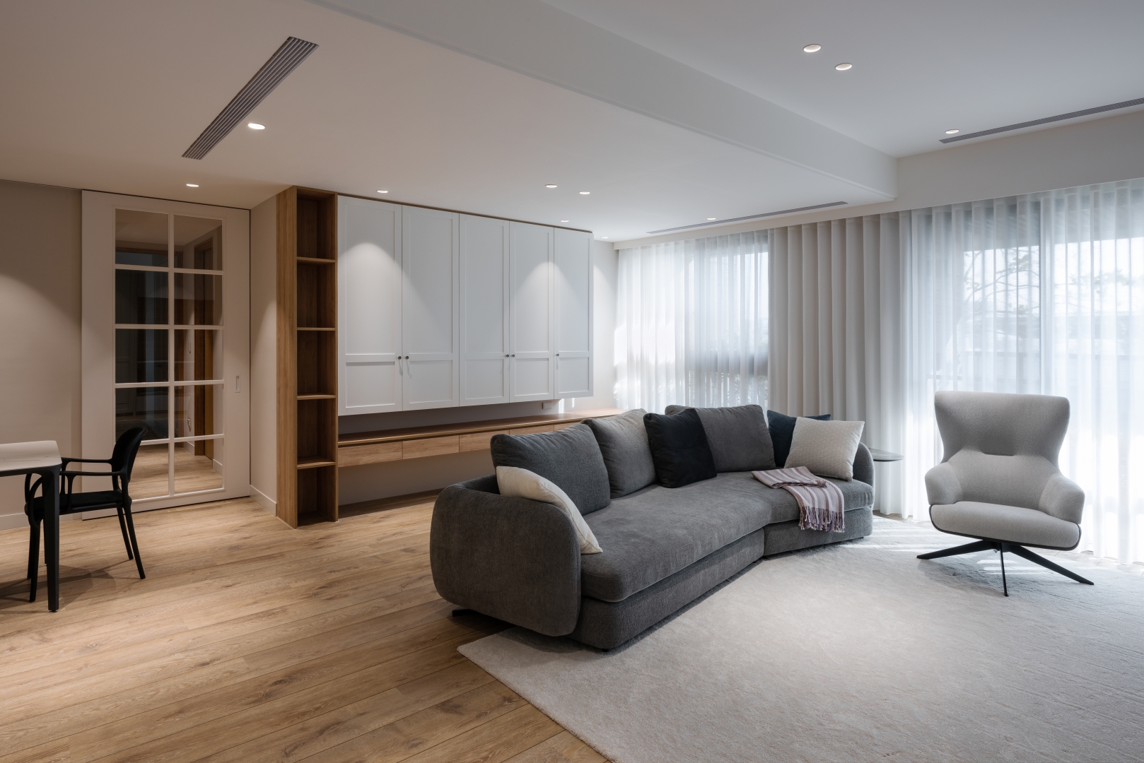 透過屋中大面的落地窗,消費者能在窗邊坐看樹梢搖曳,綿延的草地山丘景色印入眼簾,同時伴隨潺潺水聲,在 MOGU KABI 就像是在純真的療癒樂園,感受恬淡悠閒的自然寧靜。