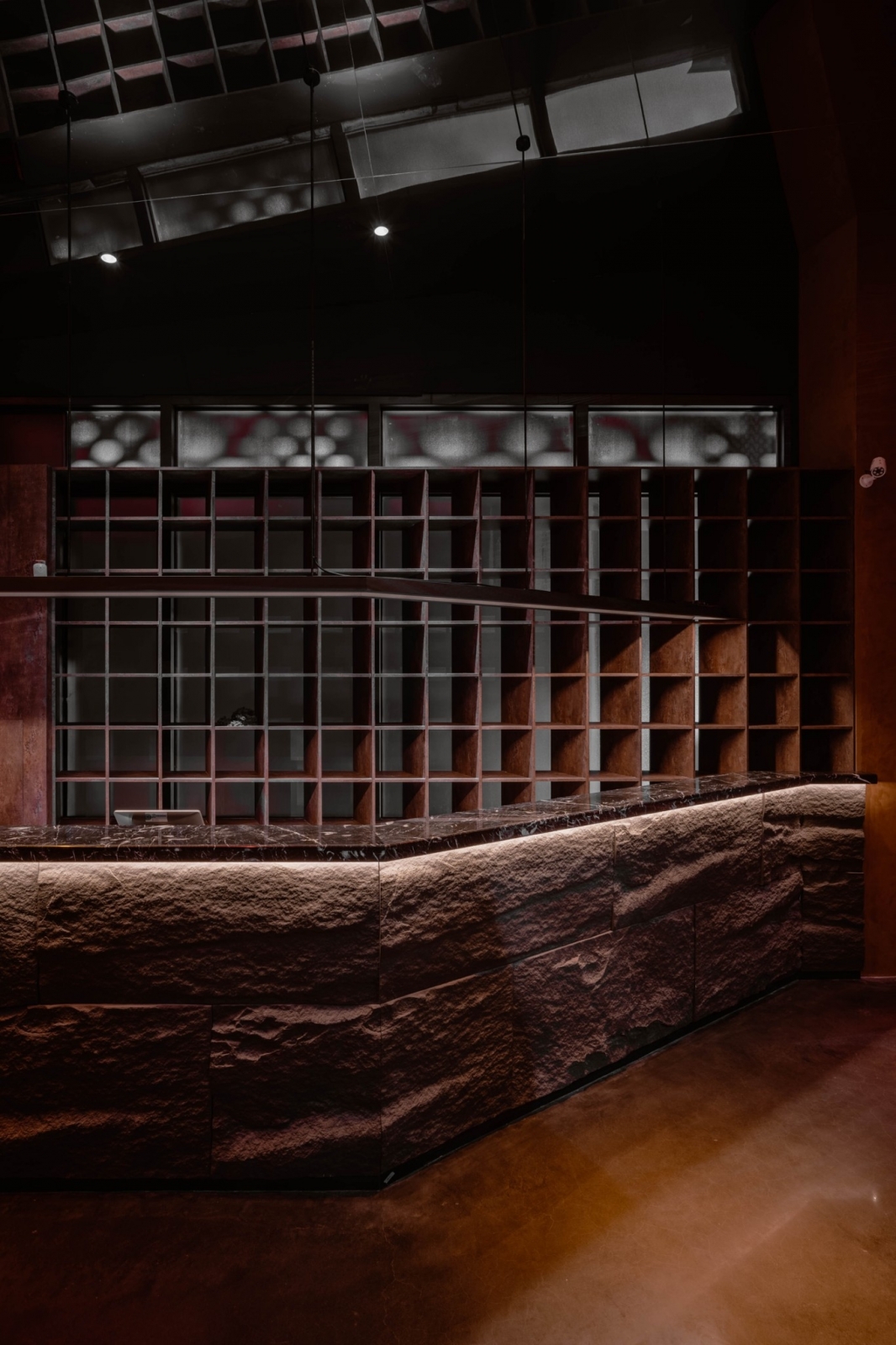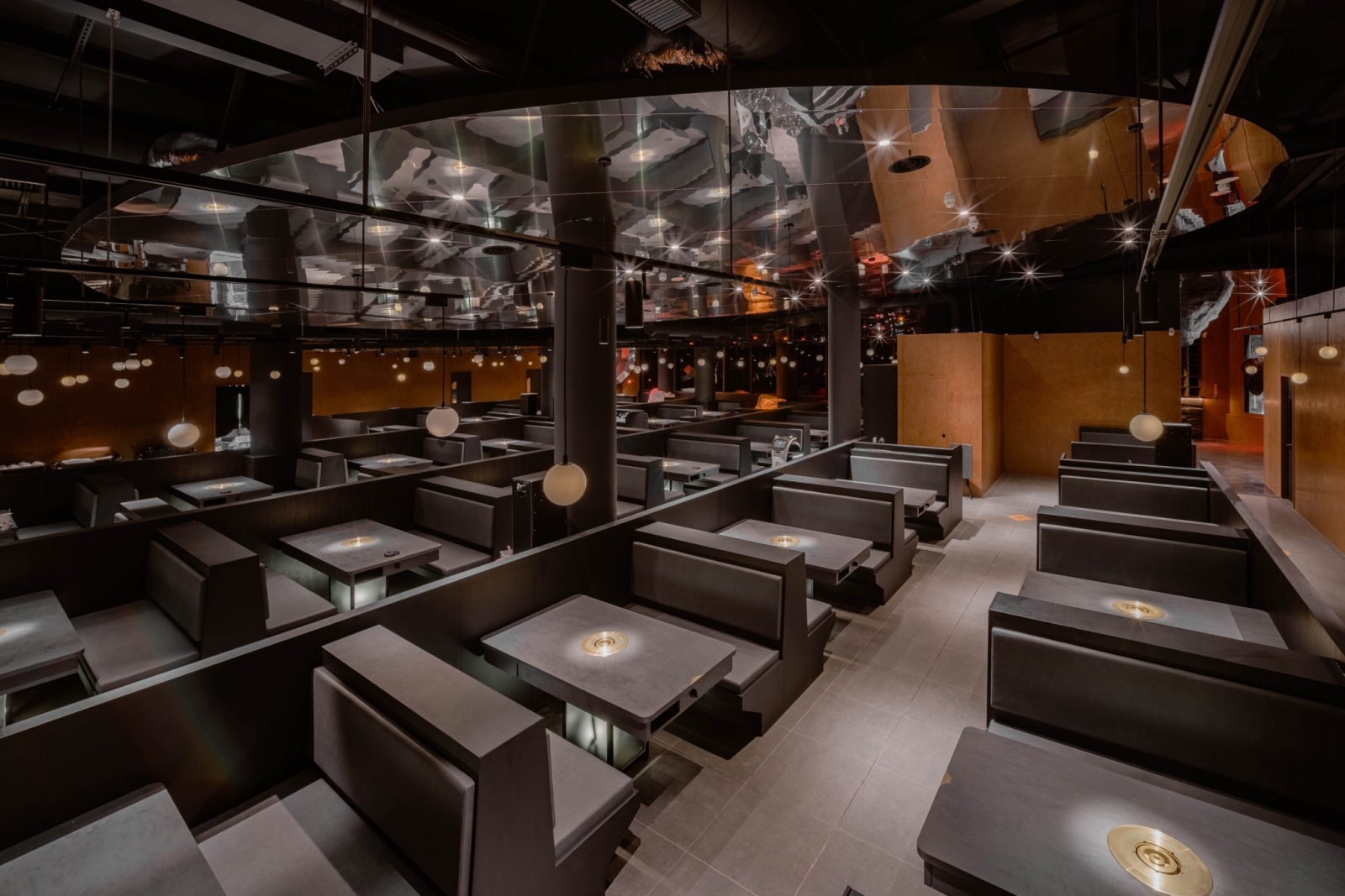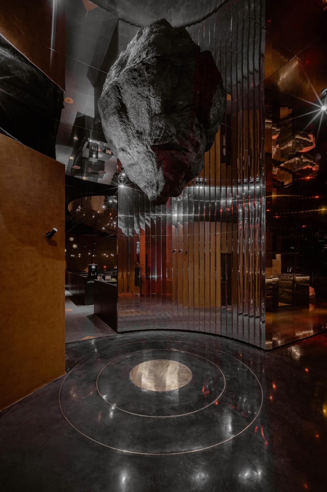 除了外觀延續店名本身炙熱、滾燙鮮紅的流線感之外,進入店內一抬頭就看到的懸浮石頭,還未開吃就有滿滿的視覺震撼。