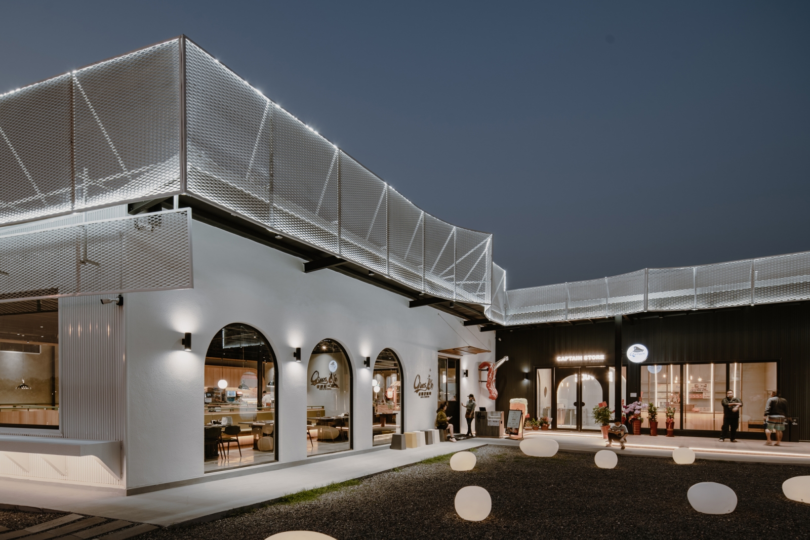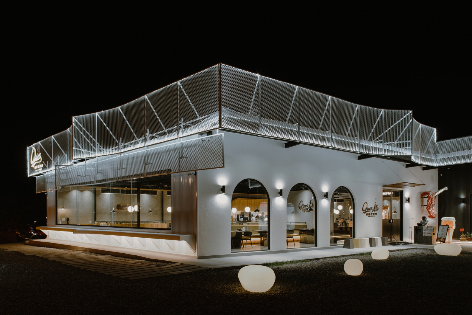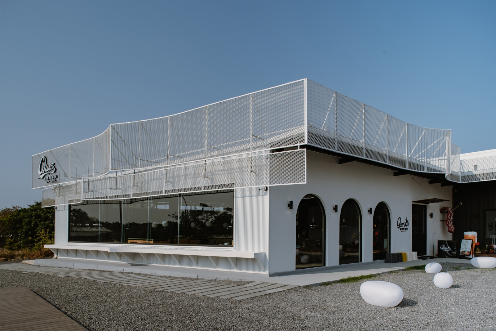 所以此次的設計也希望營造出不壓迫的感覺。建築外觀採用簡潔明亮的白色,大面積的窗戶,讓晚上用餐時能欣賞到日落時的彩霞。