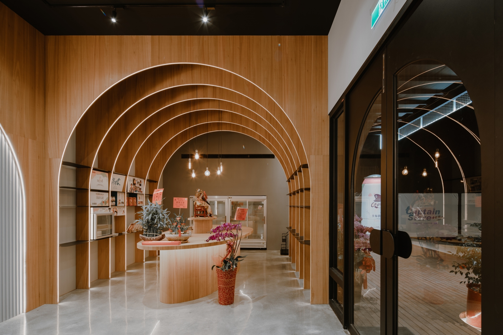 在室內烤肉區旁邊,您可以參觀紀念品區。這個區域以一個小島為主題,承載著許多回憶。大家可以圍繞著這個小島逛一圈,而一側的弧形牆體,配上燈光,猶如時光隧道,讓人仿佛沉浸在選擇這次旅行紀念品的思考中。