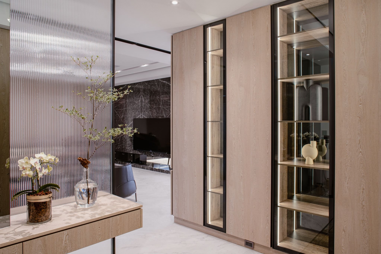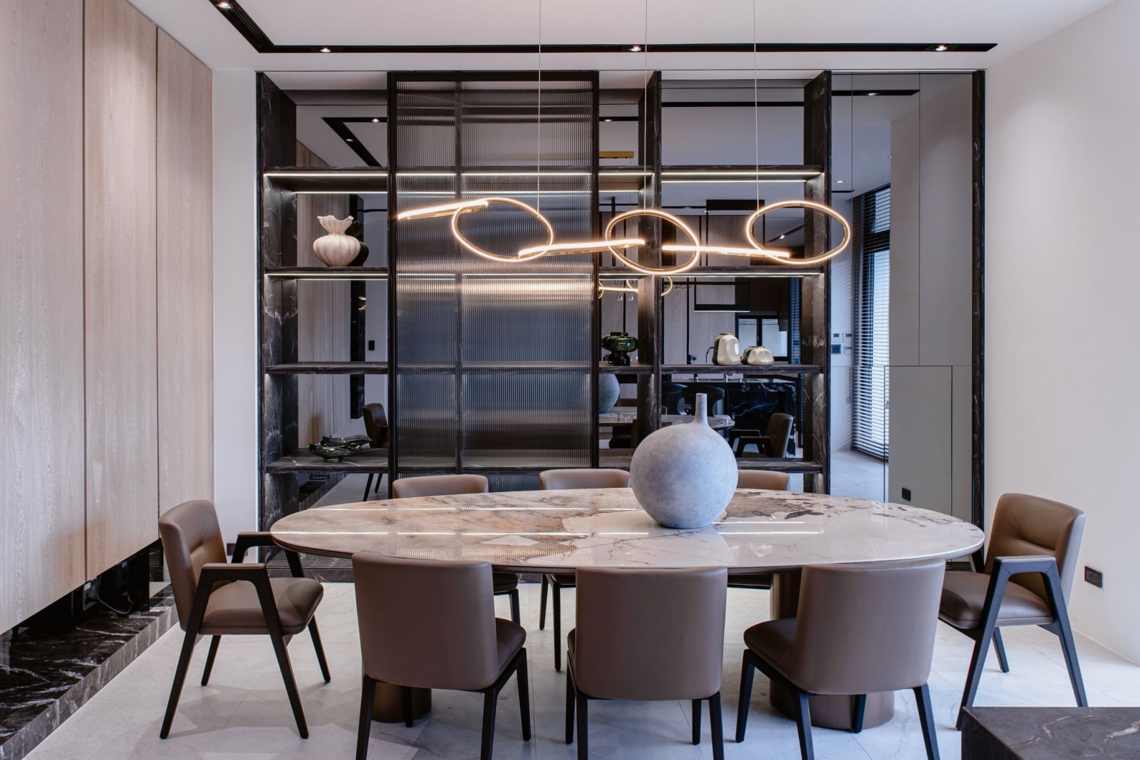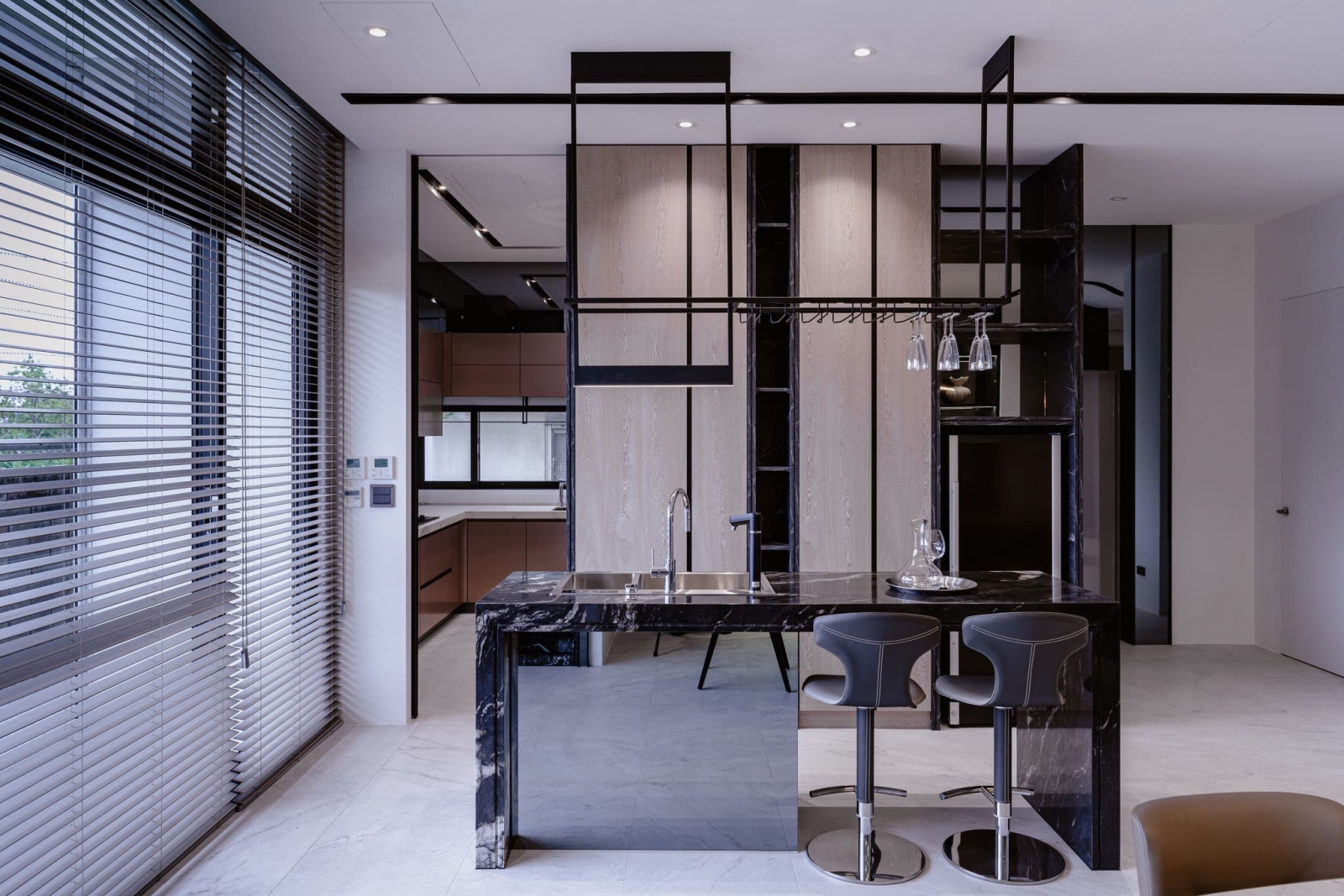透過大片玻璃窗灑落的陽光,使客廳溫暖且明亮,家庭成員可在此輕鬆愜意地分享喜怒哀樂,一同度過珍貴的時光。