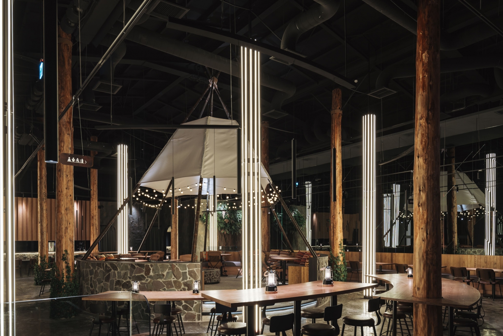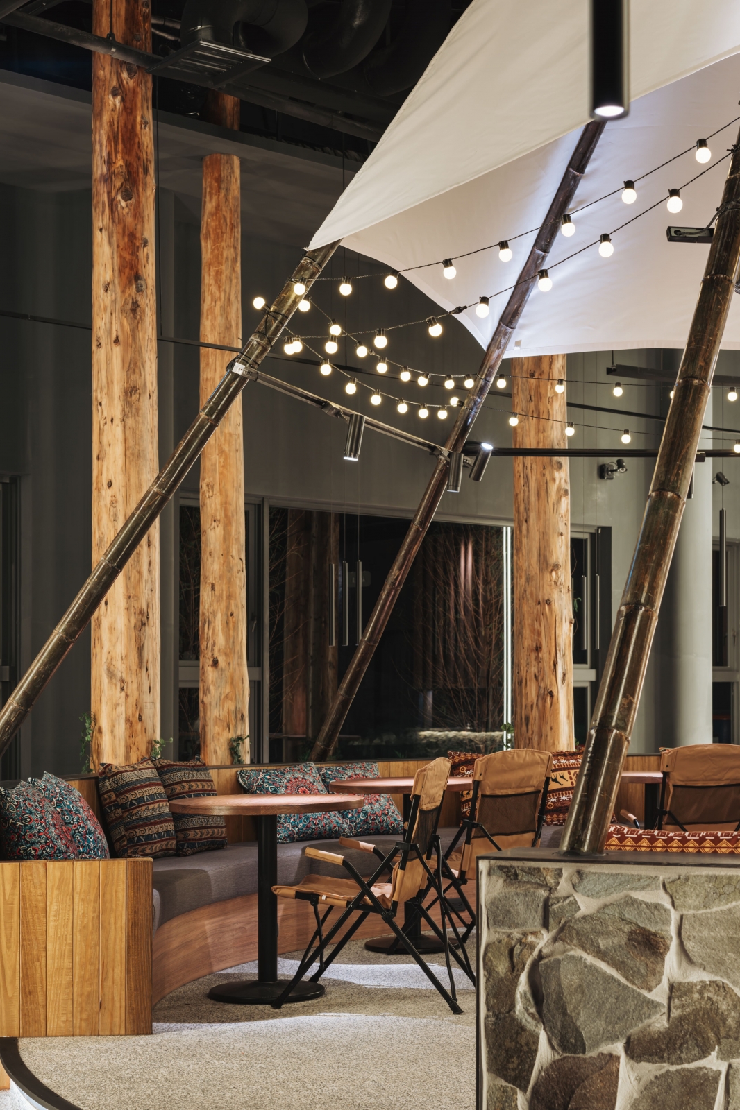 我們將露營的愜意和舒適感帶進了繁華的城市中心,打造了仿若身處於森林中的露營場所。