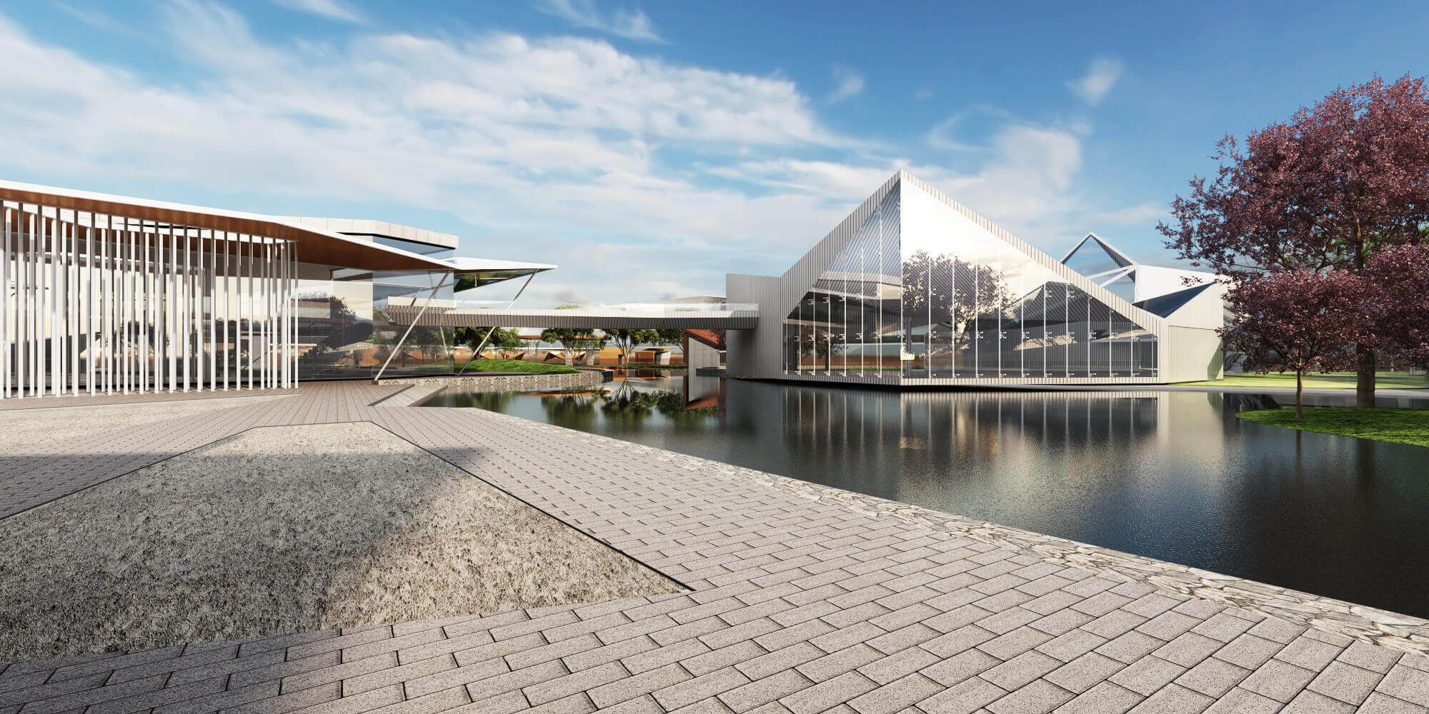 身為高雄專屬的後花園,我們在規劃每個建築量體時,都是以高雄的在地景點為入敷地配置,例如你能在溫室的外型,找出半屏山、月世界的蹤跡;生態池則是澄清湖的縮影。