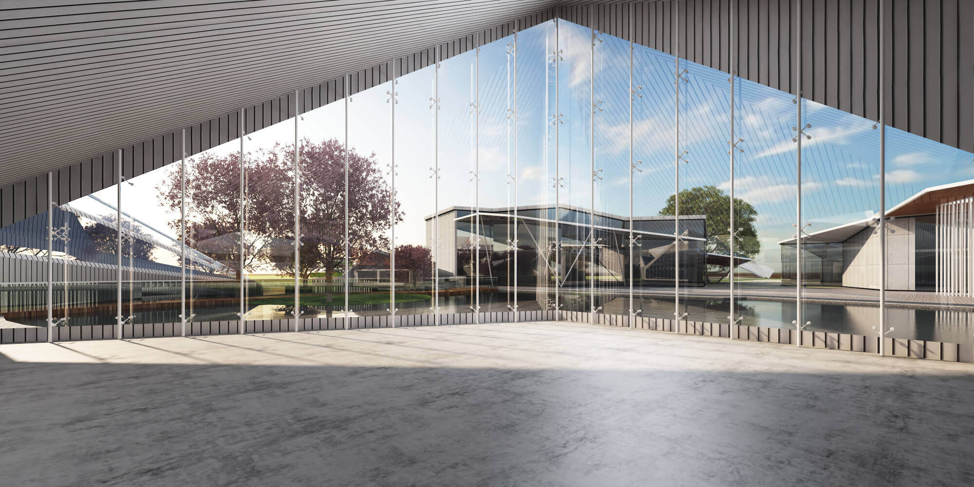 婚宴會館大跨距的空間,搭配多面向屋頂設計,完整呈現空間幾何的美感,此一設計追求空間效果的同時,也將結構體碳排放降至最低。婚禮方式除了婚宴館,我們特別規劃出適合活動的草地,讓消費者有不同的選擇。